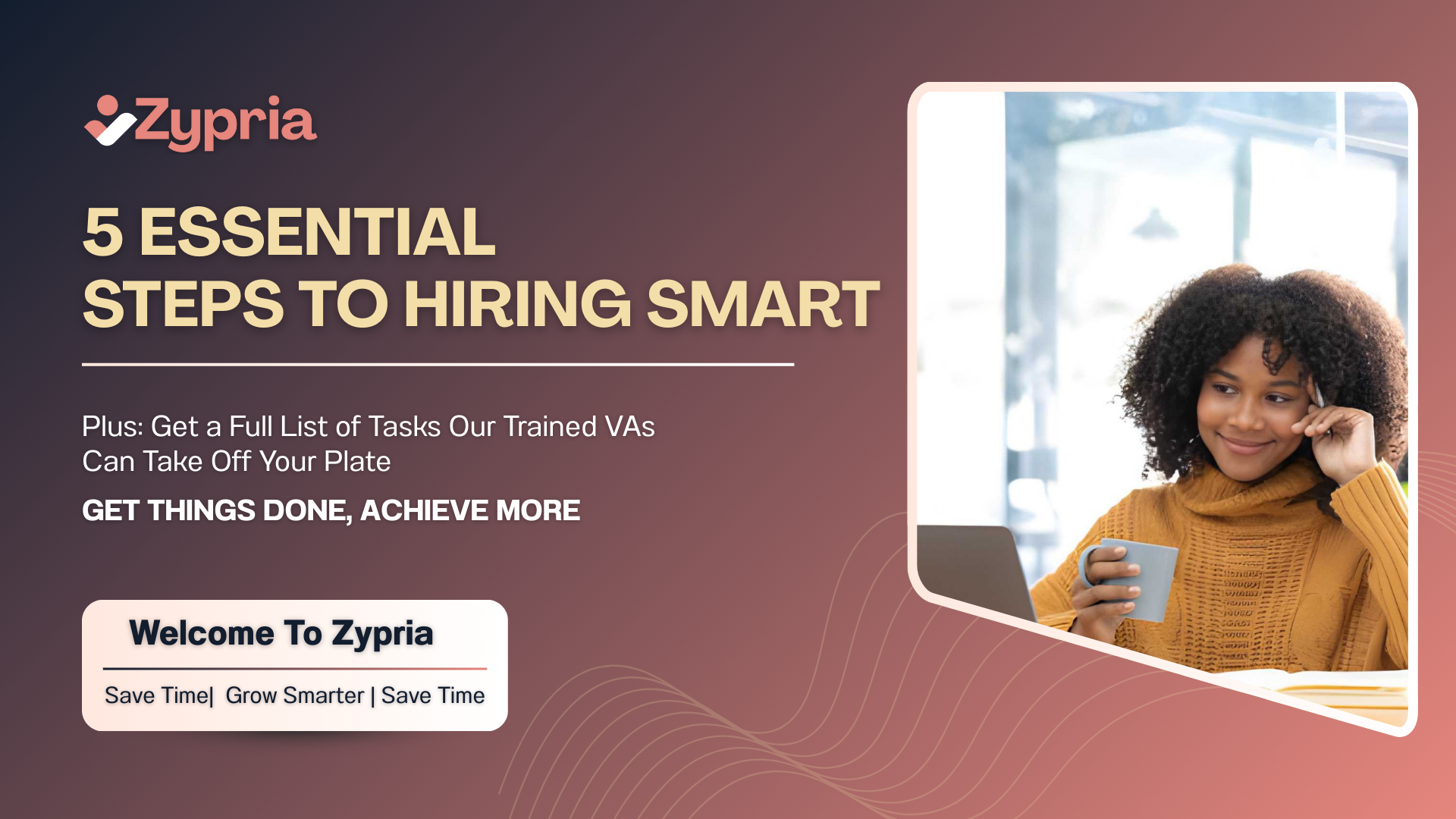Download our Action Guide to learn the 5 essential steps to hiring smart — plus get a full list of tasks our trained VAs can take off your plate.